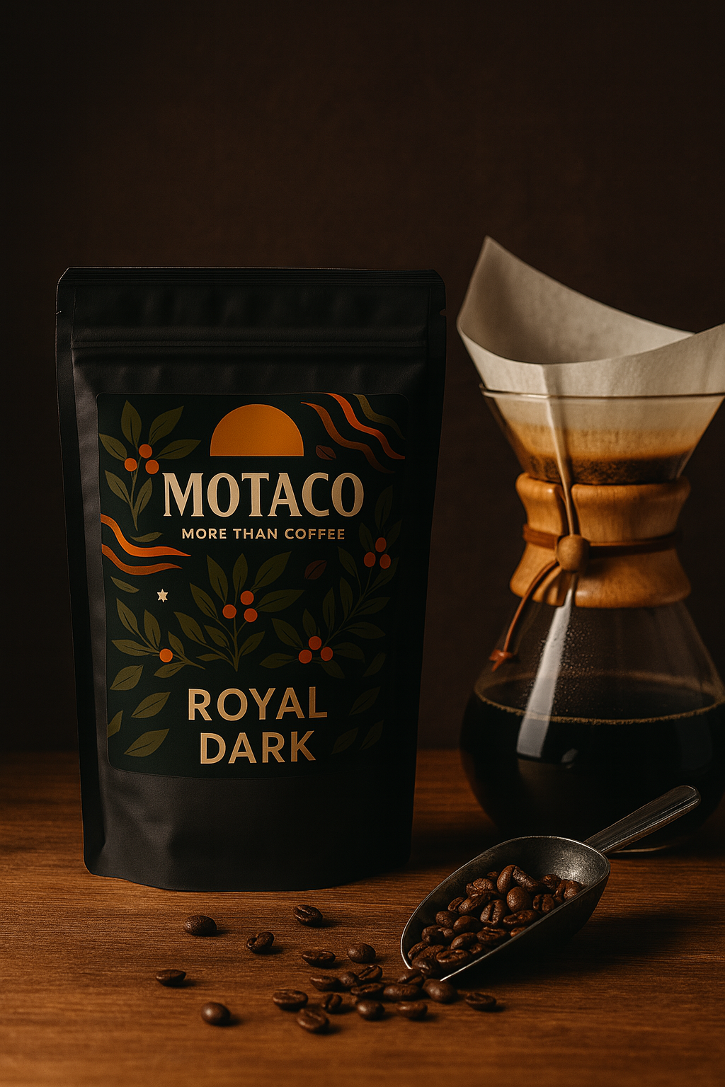 Yoğun karakteri ve güçlü aromasıyla öne çıkan Motaco Royal Dark , %100 Robusta çekirdeklerinden üretilmiştir. Kahve dünyasının en enerjik türlerinden biri olan Robusta, yüksek kafein oranı ve belirgin odunsu, yoğun tat profiliyle dikkat çeker.